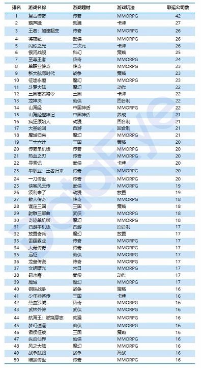 若按公司数目来看,传奇、魔幻、仙侠的数量少了将近一半,这说明多家厂商同时投放了几款此题材的产品。