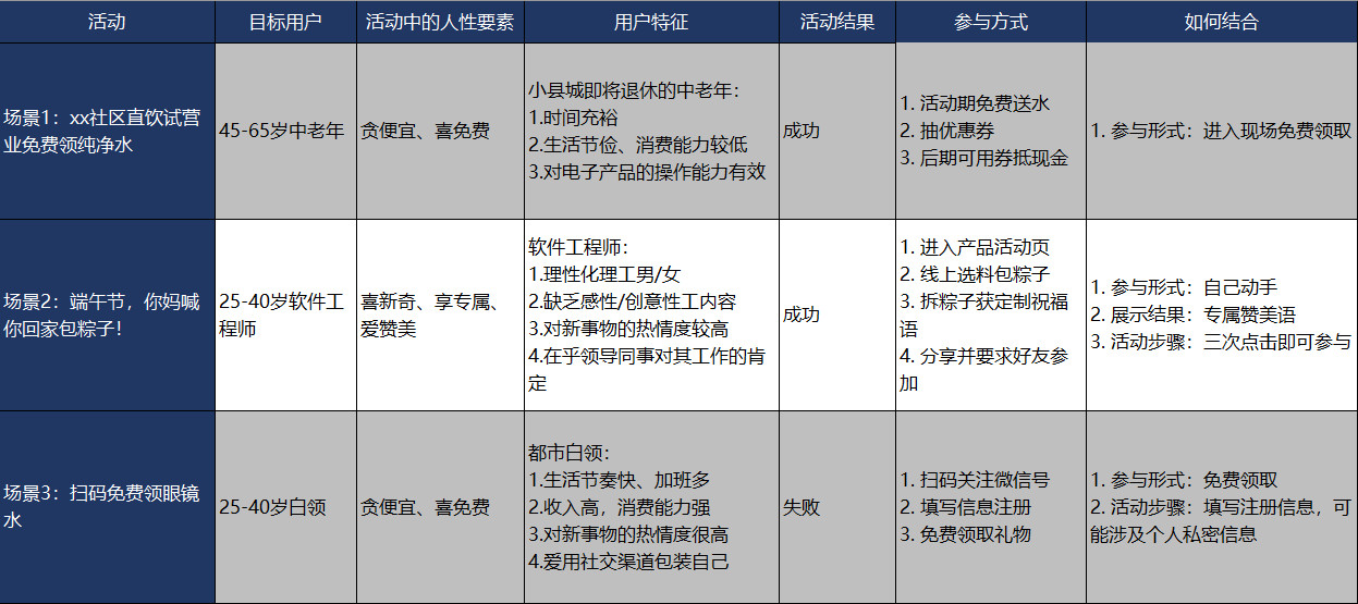 让我们再回到案例中,去复盘三场活动的用户画像。