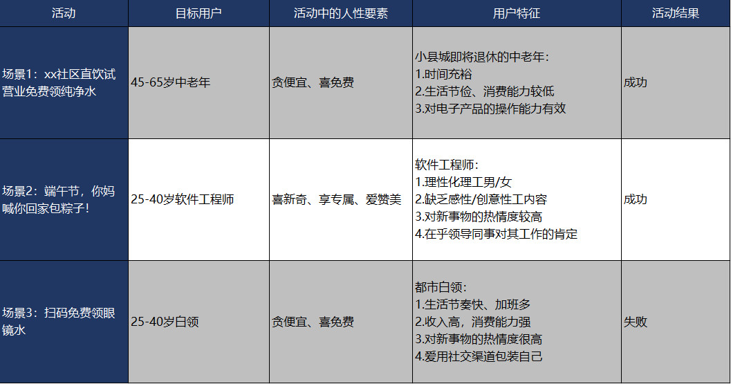 接下来,我们用上面总结出来地人性地特点来梳理一下开篇地这三场活动: