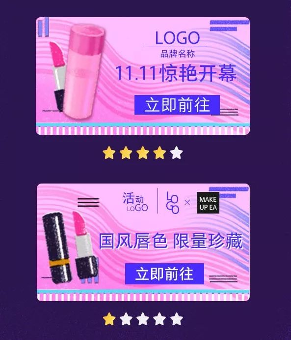 虽然这两个色调不是美妆常用色,但可以在美妆banner中脱颖而出。