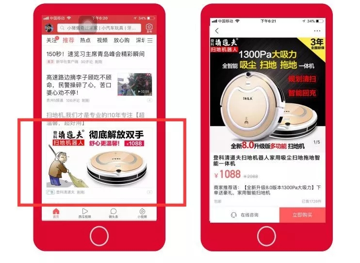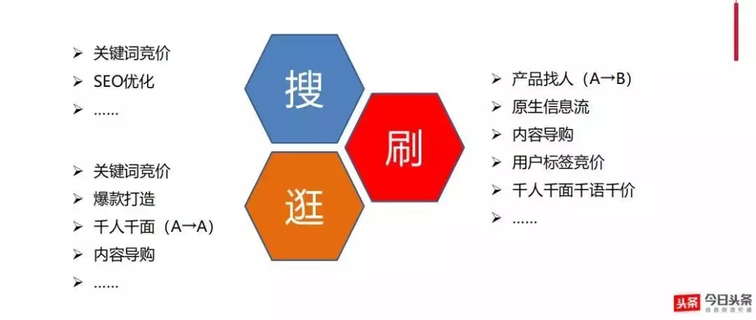 1.鲁班商品推广的展现是基于头条千人千面智能推荐的投放方式同屏无竞品,彻底摆脱价格战,产品可以获得较高的毛利空间。2.消费场景变化:搜索式消费场景vs发现式消费场景。主动购买到更加随机性、冲动性购物 。从想好了买什么再去购买,到喜欢就买。更符合现在消费群体消费习惯。