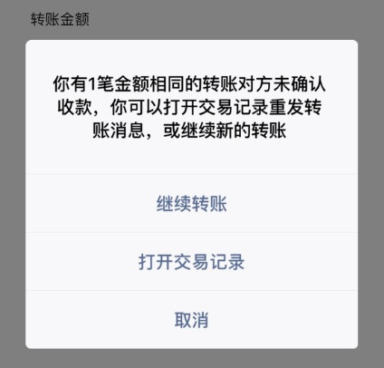 还有各种各样反馈的例子:微信转账如果两笔金额一致,会出现确认框,避免误操作。