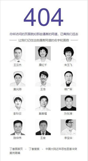 丁香园404 no found界面展现了因恶性医患遇害的同道,向他们表示哀悼。