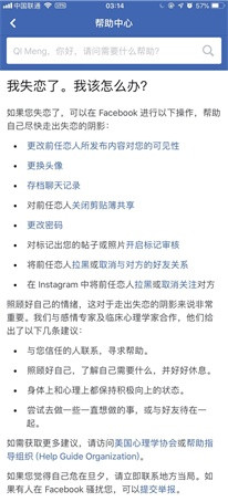在Facebook修改了自己的感情状态,看到了这样的一则官方帮助贴,有点暖心了。