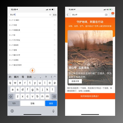 在淘宝搜索穿山甲,心里一惊,居然有搜索结果,然后……