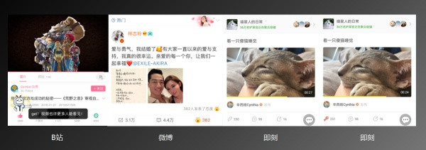 下图分别来自B站、微博和即刻。在点赞后会发生一些与众不同的变化,给人带来新意。