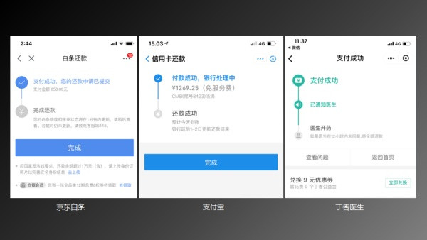 很多产品的成功页都会有个流程展示,流程的展示能给用户以确定的预期,从而消除因不确定而带来的焦虑感。