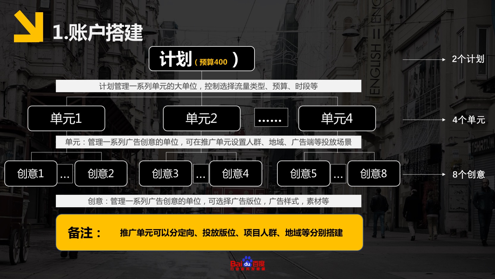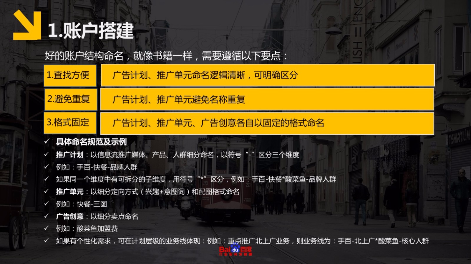 ②账户搭建:以特征、卖点、受众等维度分类搭建,方便对账户进行管理