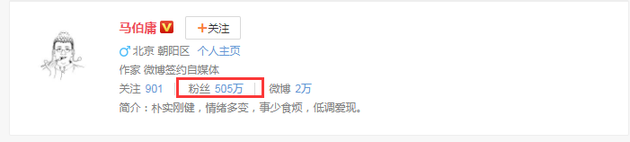 再回到之前说的马伯庸,微博粉丝505万,一句“朴实刚健、情绪多变、事少食烦、低调爱现”的烟火气与现实感,成为众多粉丝的金科玉律。