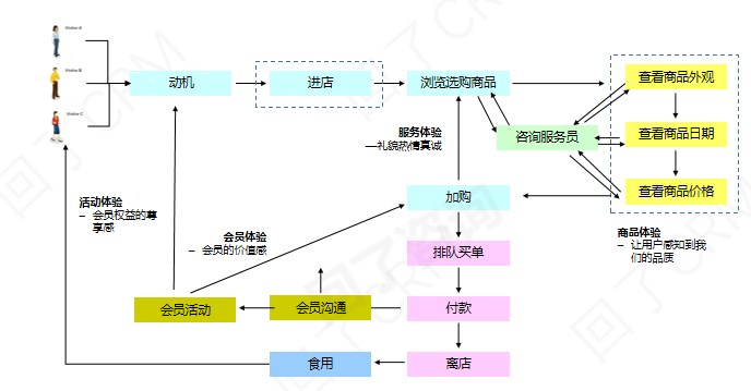 管理顾客体验,首先需了解顾客的动线,明确顾客与企业的接触点,在这些接触点上顾客的行为,会产生的表象和潜在的需求,当需求满足或者不被满足时的反应,最终会给企业带来的影响。只有了解这些我们才能结合企业的实际情况,重点突破,利用有限的资源为顾客创造最大的价值。