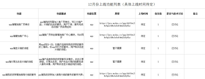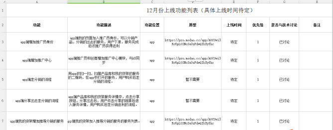 一旦这个表发出去之后,所有的人都按照这个表去执行,运营要在产品上线前准备运营工作的,市场要根据此表去安排推广工作,制定相应的产品的推广的计划。