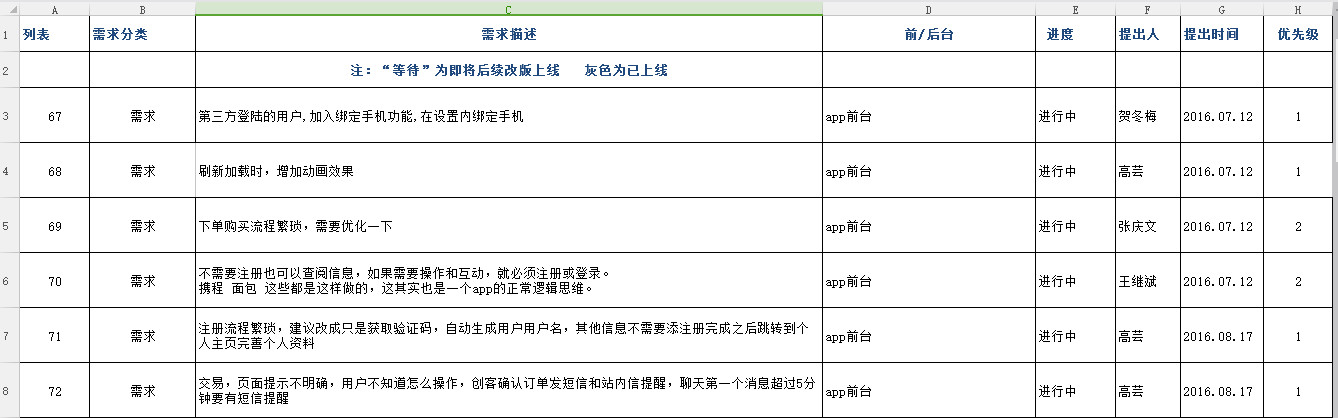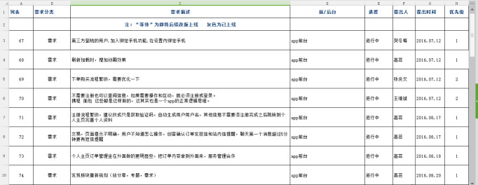 对已经开发的完的需求一定进行标注管理,没有开发的,不必要开发,都要进行合理标注。在这里给大家看一下我的,整理不好请大家多多关照。