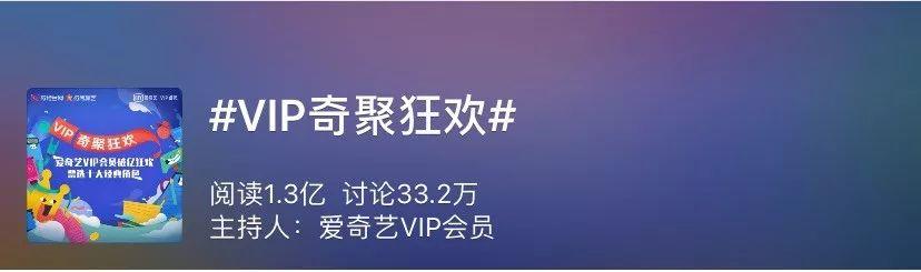 也正因为如此,微博上关于# VIP 奇聚狂欢#的话题,上线后不久就获得了 1.3 亿的阅读量。