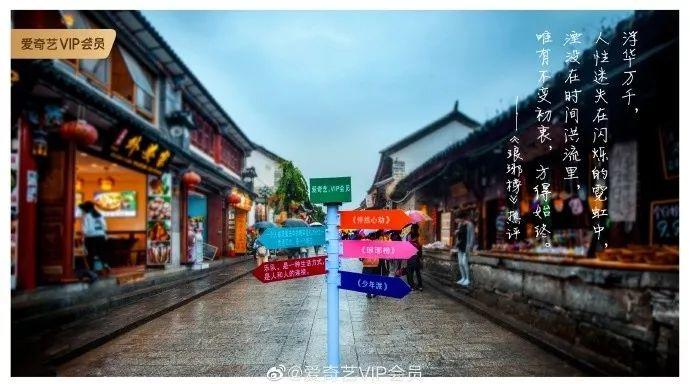 带着这些梦想和故事,爱奇艺 VIP 会员首先打卡大理古城。在古城的各个路口放置了由会员票选出来的经典台词路牌,让每个经过这里的人,都忍不住停下来驻足观看。