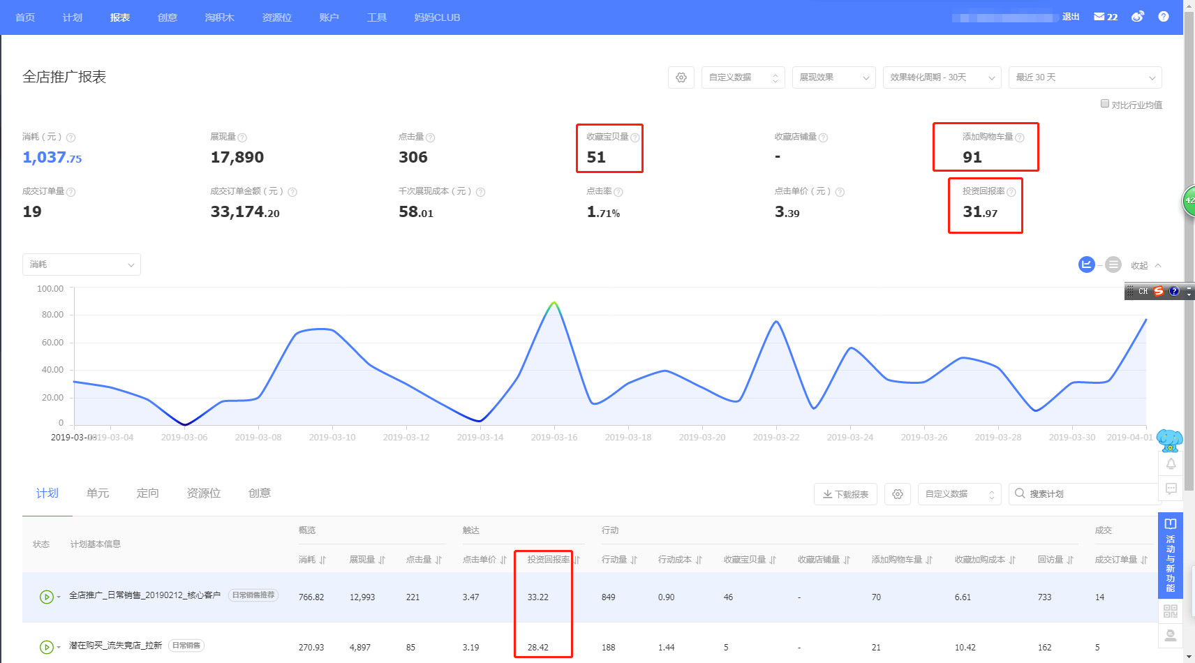 钻展这一块,我在其他回答中也谈过,多数人对钻展的印象是大店和品牌店专属,而新店或基础差的难以实践,实际上可以关注钻展中的单品计划,我们在实践中发现,转化数据比直通车更好,成本比直通车更低,操作方法较为简单,下为钻展单品数据报表,供参考: