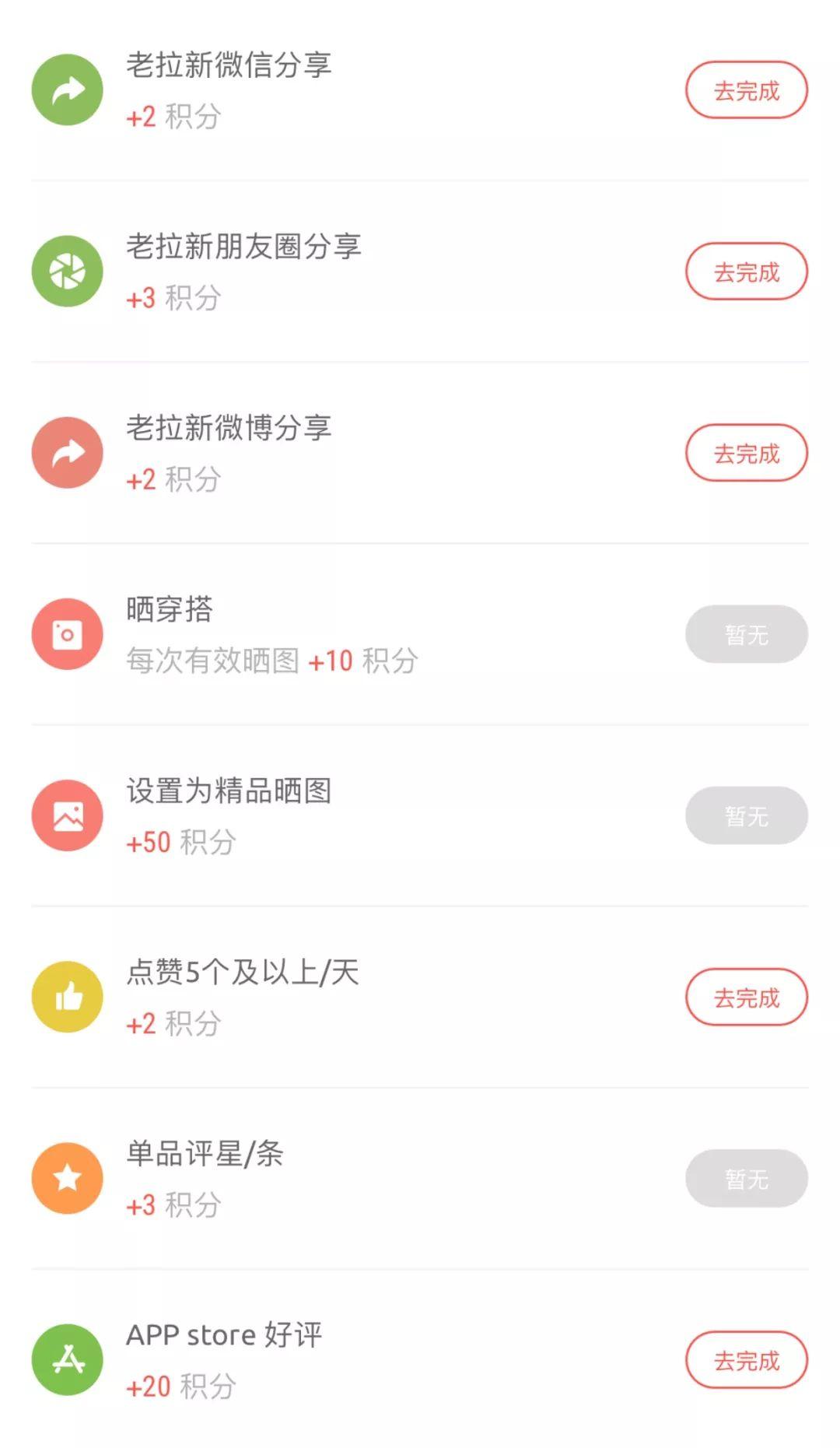 上面图片为衣二三平台的积分商城,可以看出,目前还未开放更多的权限,积分商城是一套完整的运营规划,如果单纯是积分商城的运营,那么运营人员的职责至少包括:积分商城页面装修,商品上下架,价格库存更改,售前咨询,订单管理,积分管理,用户管理等。