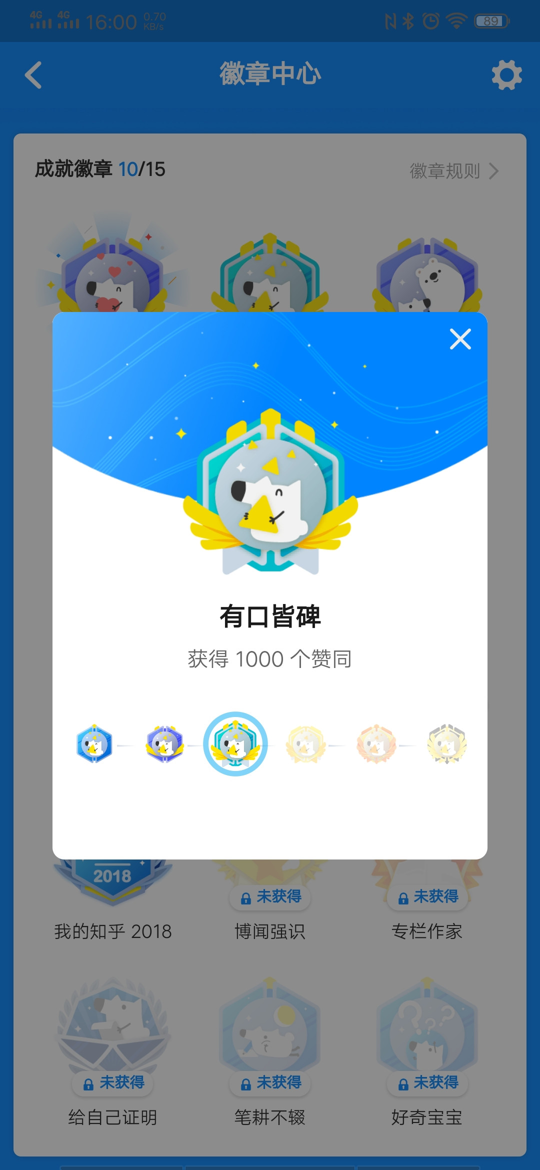除开这两个完善的用户成长体系外,知乎还有增强成就感的勋章系统。