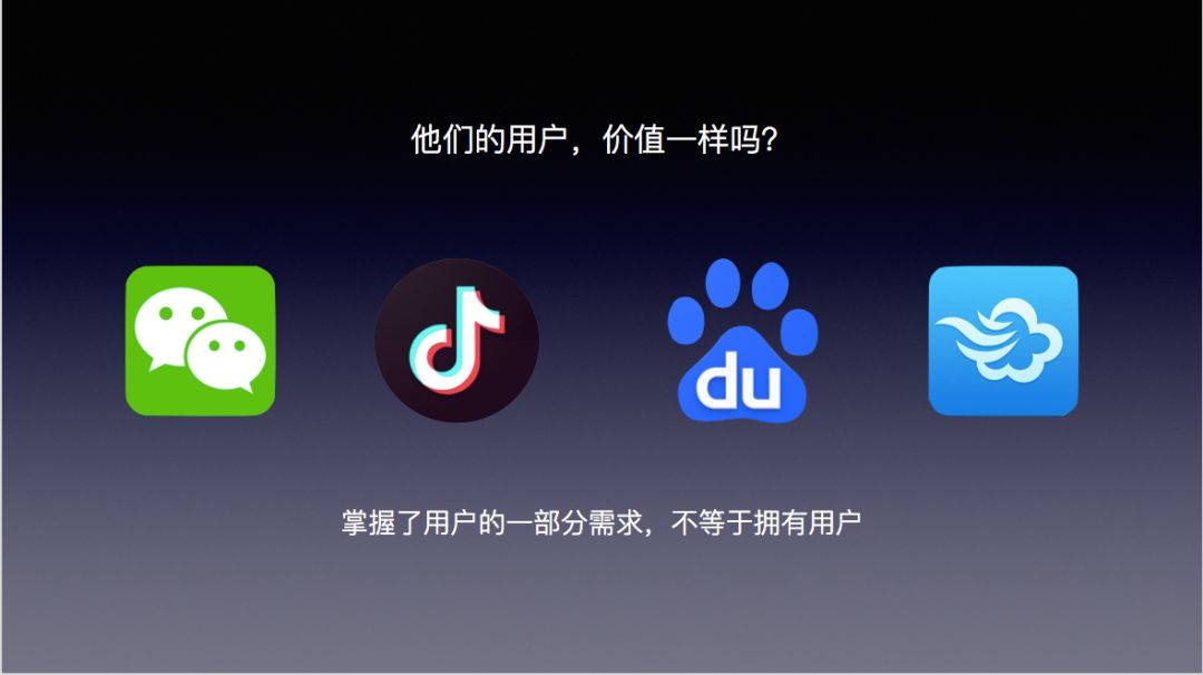 你掌握的用户量可能是一样的,但是你掌握的用户的具体的需求是不一样的。你掌握了这些用户,不等于你掌握了他们的需求。