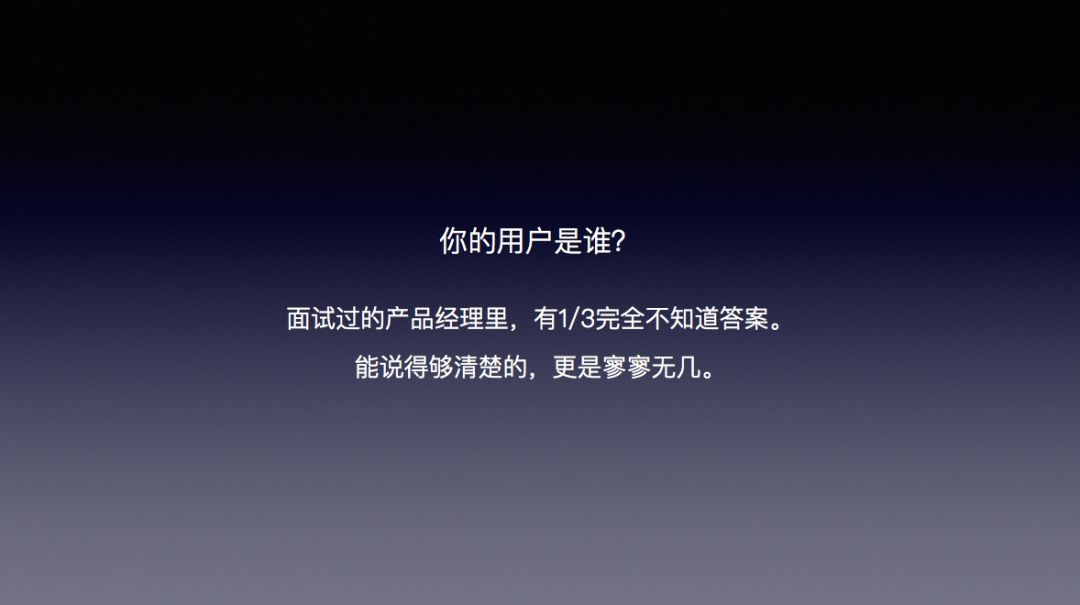 如果作为一个产品设计者,不管你是产品、运营,或者说你是一个创业者,还是老板,等等。不管你是什么角色,只要你是面向用户的,你一定要知道你的用户是谁。