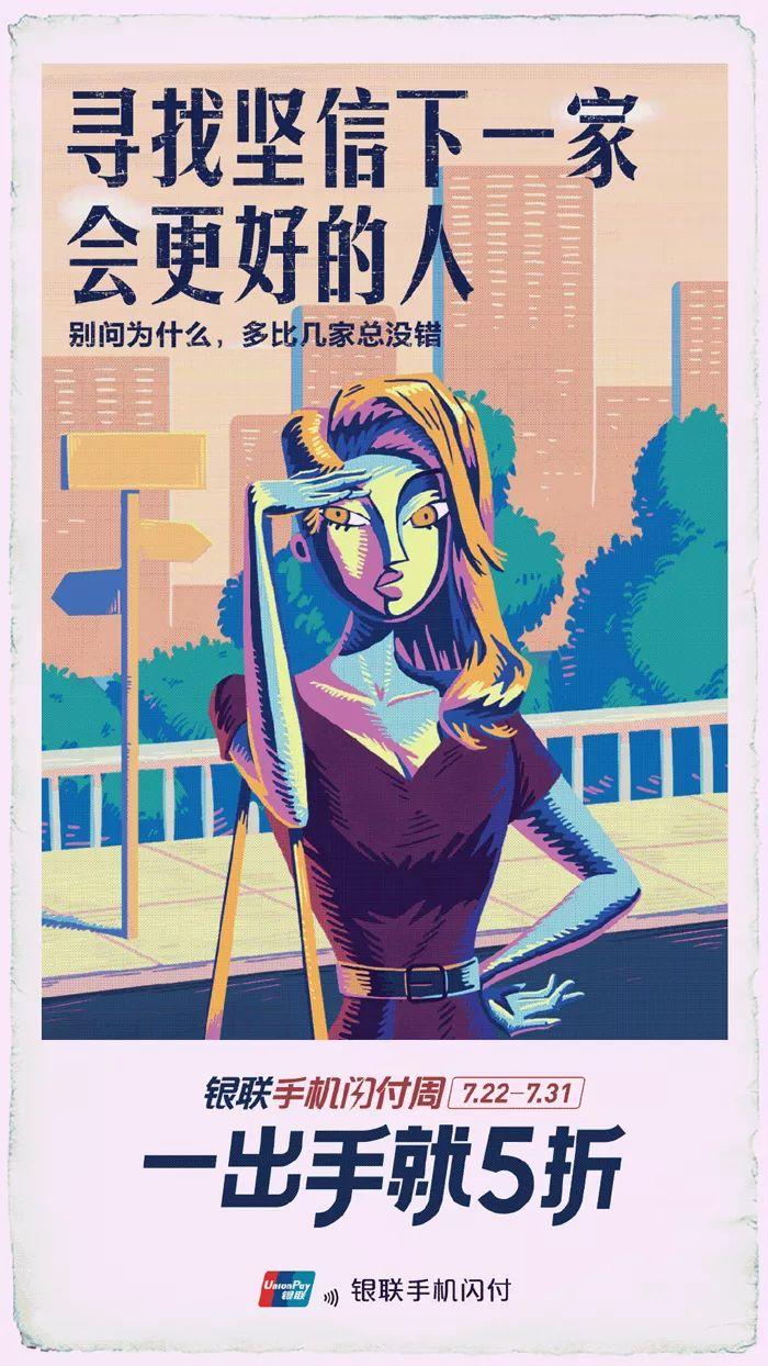 广告内容也不该围绕“极速闪付”、“不打开App就支付”“一秒闪付”宣传。“快付”活脱脱是一个伪需求,伪痛点。付得快说明自己的钱消失得快,谁为会为了钱流出快而感到“爽”?用户要的不是快,而是爽。不知道你同不同意这个看法。要给用户留下一个具体的“启动”专属动作习惯,这才是银联推广重点。