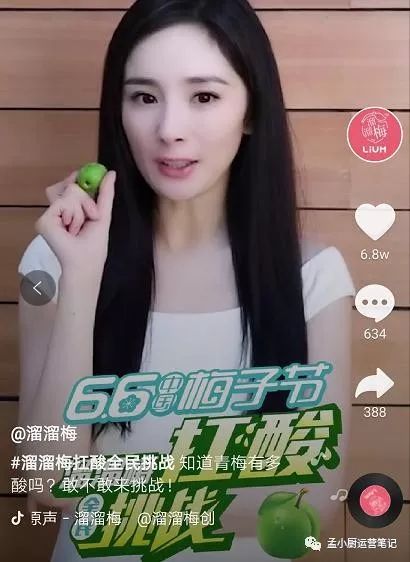 “溜溜梅全民抗酸“是18年下半旬的活动,新产品的发布,溜溜梅原创的音乐,原创的玩法,加上明星杨幂的牵头,网红的跟风与全民的参与,全渠道购物链接的打开,期间这款溜溜梅销量5千万销量。