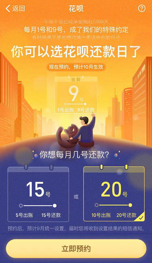 本次新规调整后,用户有两个新的还款日供选择:如上图所示,一个是15日(账单日5日),一个是20日(账单日10日)。据花呗官方介绍,本次开放对象为花呗签约一年以上并通过系统评估的老用户,且每个用户一年之内只可修改一次,通过后不可撤销。