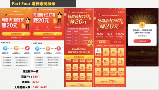 我们在日活基本一致的情况下,这个页面PV涨了62%,邀请率涨了42%,人均邀请人数从3.87涨到了6.42%。