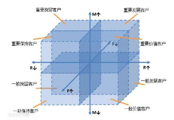 RFM模型是客户管理中的经典方法,它用以衡量消费用户的价值和创利能力,是一个典型的分群模型,依托收费的三个核心指标:最近一次消费时间(Recency)、消费频率(Frequency)和消费金额(Monetary);