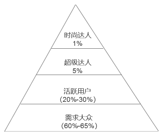 有很多用户之后发现用户对产品的态度不一样,有的经常使用,有的偶尔使用,有的几乎不使用,这时候可能会想到金字塔模型,把用户做个最大概的分层,比如潜水用户、新用户归为一类为“一般用户”,经常使用、反馈问题、活跃的用户归为一类为“活跃用户”,那些不怎么使用的用户归为一类为“要流失的用户”,很粗糙的分类;