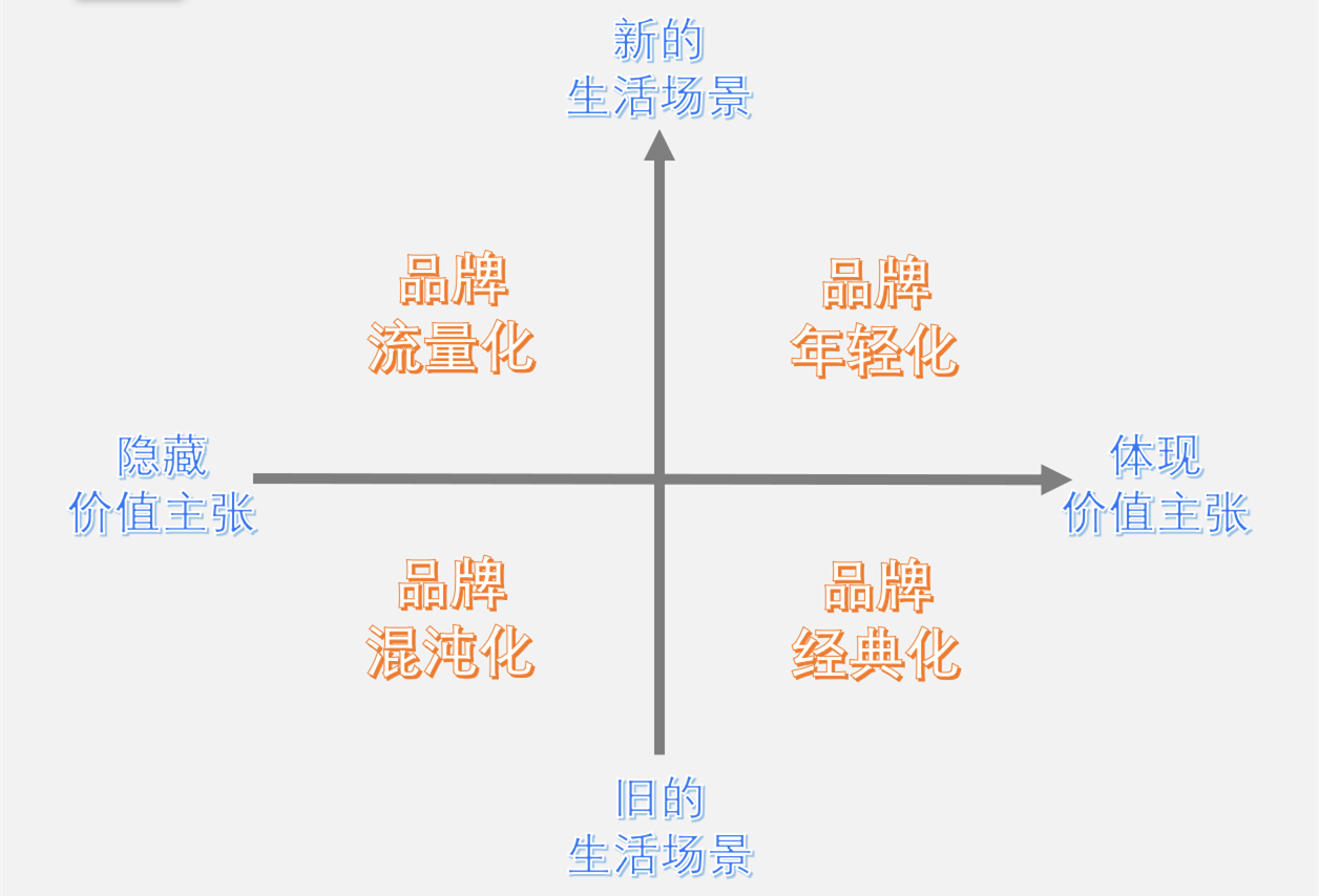 总之,品牌老化不等于产品老化,品牌老化是因为提供了过时的消费动机。你需要做的是,在明确品牌定位后,把价值主张传递到消费者新的生活场景中。