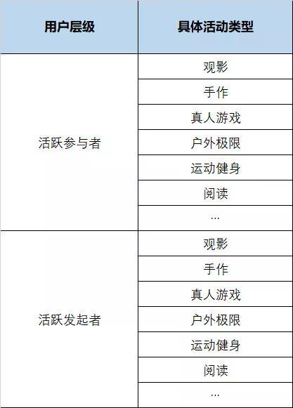 上文已经针对各个用户层级进行策略进行,接下来将针对活跃参与者和活跃发起者,进行不同活动分类的人群制定运营策略。