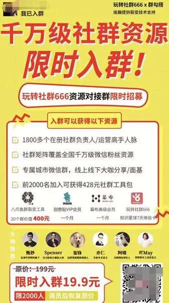 再举个例子,之前玩转社群666的裂变,发到朋友圈的海报强调人脉,这是人们共同的需求,所以,进群有男有女,有律师、有运营等等。
