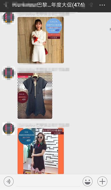 设计师在9点把每一款图片带上原价和一口价,并标明各个尺码的件数,一张一张发到群里。然后用户如果有薅羊毛,把薅羊毛截图给设计师私人微信,然后发喜欢的款式图片,并且直接微信转账,并留下地址。