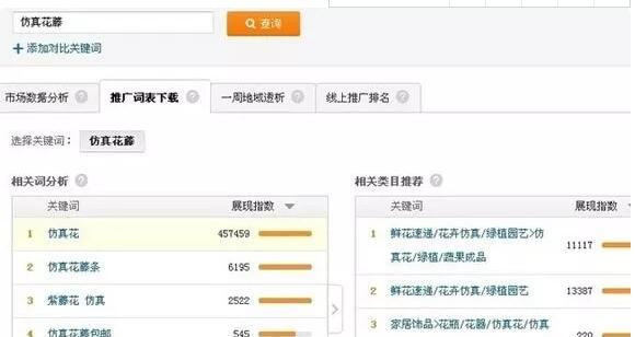 1、关键词的七天搜索人气要在1000以上,确保足够的市场空间。当然我们仿真花这个类目太小,这个搜索人气可以适度降低。