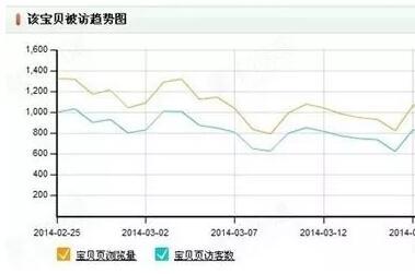 可以在量子恒道中的宝贝被访详情页中看到,能够一目了然看到宝贝每天的流量变动趋势。如果哪几天的流量下降较大,要及时查找原因来解决。