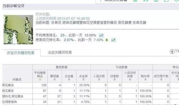 在做好宝贝的标题优化之后,后期还要通过市场每天的数据来查看自己宝贝的变动情况,这主要是监控店内不同宝贝每天的流量变动,和宝贝每天不同关键词的流量和转化的变动。