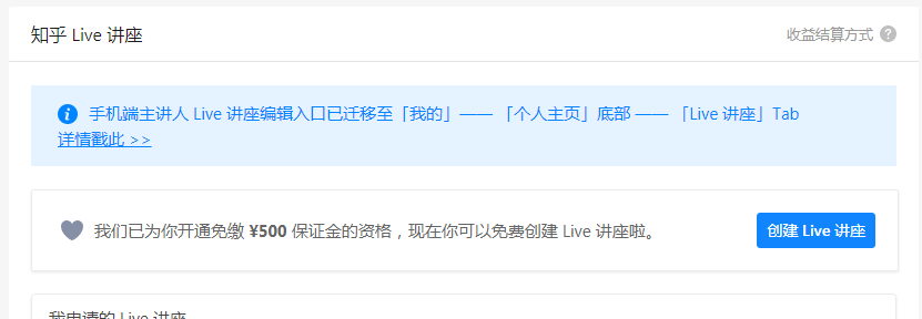 知乎开live需要500的保证金,但粉丝达到一定量,就免了这个钱。