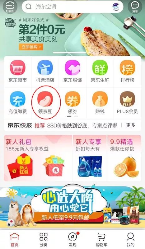 用户只需要打开京东App,点击“领京豆”,就可以签到,连续签到三天还可以领取“京豆礼包”。
