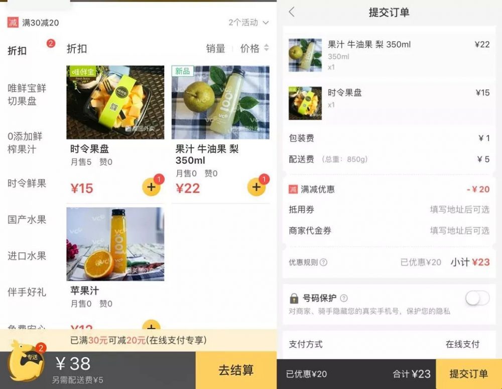 以美团外卖为例,商家会做“满30减20”的活动,如下商品使用优惠券后只需要付费23元,对于消费者来说就是非常的优惠。因此,当消费者购买的价格越高时,享受的优惠就越多。