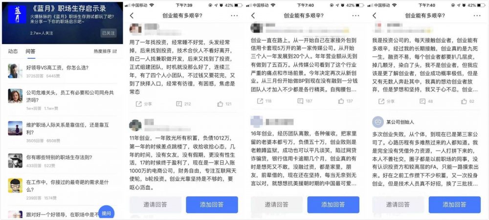经济下行的2019年,他们举步维艰,为他们卖命的企业员工同样艰难。和《蓝月》中的程旭一样,这些名校毕业的高知员工,满怀报复加入创业公司,却逃不过残酷的现实。当公司生死存亡命悬一线时,他们的梦想孵化器破碎,不仅对老板,甚至对自己都会产生各种质疑。随后,他们在脉脉的职场社交平台上袒露自己的迷茫、诚恳求教,期望找到出口。