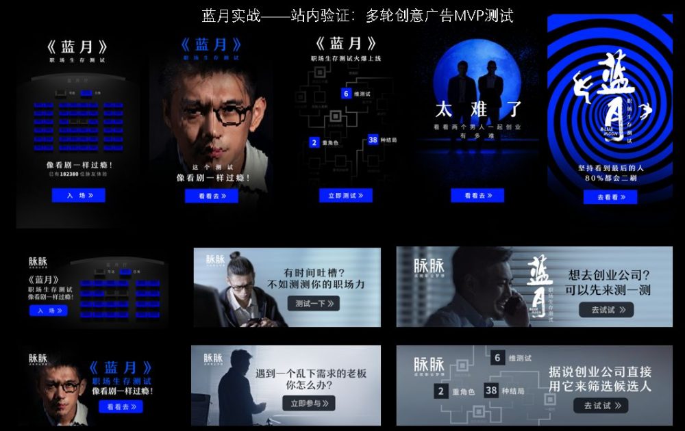 “因为蓝月的交互设计需要用户有快速点选的操作,如果横屏视频一出来,大家更多是观剧的心态。”脉脉的创意团队与导演基于此观点,通过30天反复讨论和验证,最终还是从移动端产品体验考虑,决定采用了行业里首个竖屏视频互动剧的形式。