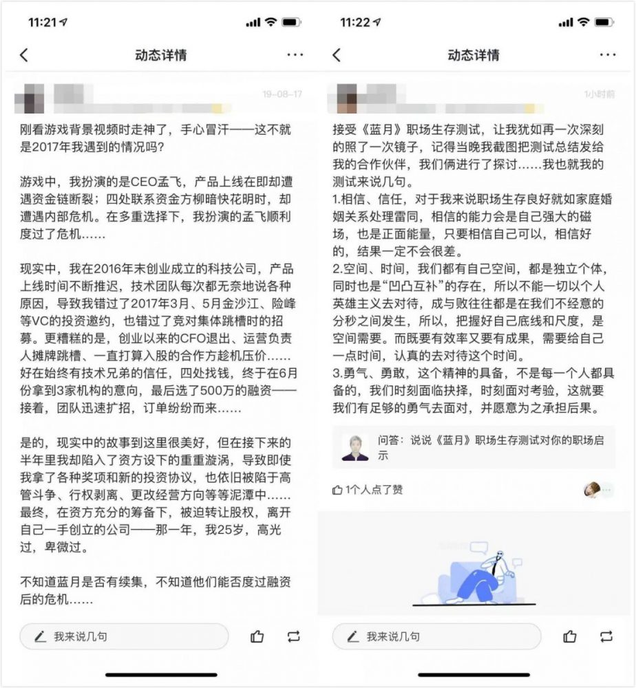 脉脉用户从《蓝月》中