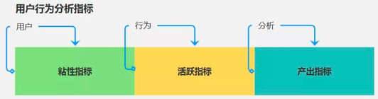 对用户行为数据进行分析,关键是找到一个衡量数据的指标。根据用户行为表现,可以细分多个指标,主要分为三类:黏性指标、活跃指标和产出指标,如图3.3-3所示。