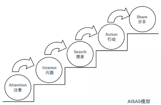用户行为分析模型其实也是一种AISAS模型,即代表了用户从注册、认证、开户、充值到投资整个过程表现:Attention注意、Interest兴趣、Search搜索、Action行动、Share分享,也影响了用户行为决策,如图3.3-11所示。