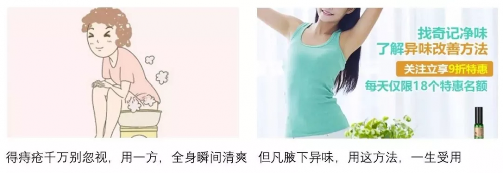 广告类型:治狐臭、痔疮、妊娠纹、盆骨及腿型矫正、牙齿矫正、妇科疾病等