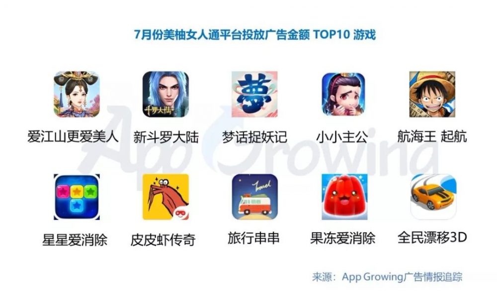 小狮子也为大家整理了美柚女人通平台8月份累计广告投放金额Top10应用(非游戏)及游戏排行榜: