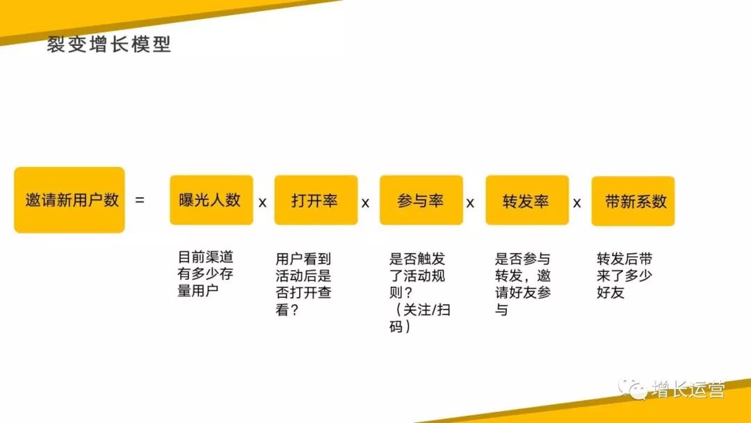 =渠道总用户数*打开率*扫码参与率*转发率*带新系数