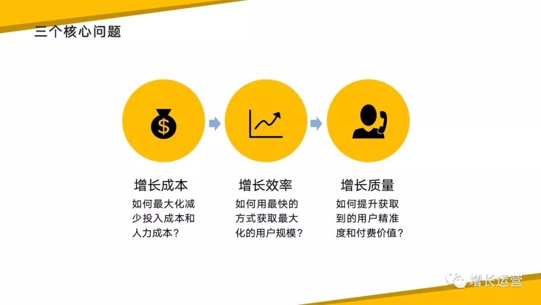 从设计策划活动到执行落地,有三个核心问题是需要我们一直关注的,那就是:如何控制增长成本,如何提高增长效率,如何保证增长质量。