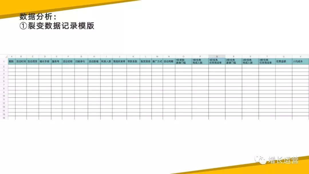 二是关于裂变活动的数据分析,这里会给到模版来告诉大家活动结束后该如何记录分析数据,要分析哪些指标,分析的思路是怎样的。