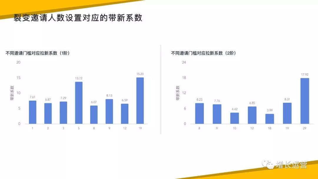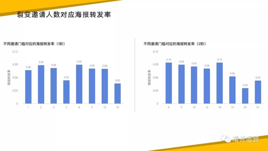 上图中,我们主要看的是不同的邀请门槛对应的带新系数。也就是每个分享海报的人能够邀请多少好友关注。